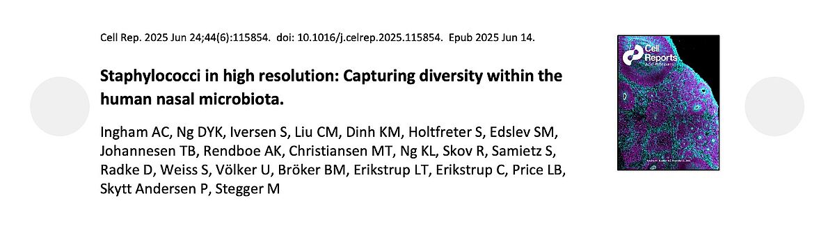 Ingham AC, Ng DYK, Iversen S, Liu CM, Dinh KM, Holtfreter S, Edslev SM, Johannesen TB, Rendboe AK, Christiansen MT, Ng KL, Skov R, Samietz S, Radke D, Weiss S, Völker U, Bröker BM, Erikstrup LT, Erikstrup C, Price LB, Andersen PS, Stegger M (2025) Staphylococci in high resolution: Capturing diversity within the human nasal microbiota. Cell Rep. 44:115854. ArtikelPubmedRelated |