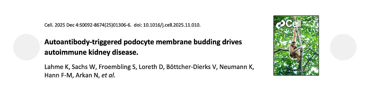 Lahme K, Sachs W, Froembling S, Loreth D, Böttcher-Dierks V, Neumann K, Hann F, Arkan N, Brehler M, Reichelt J, Sgries A, Surmann K, Gaffling S, Adler MR, Sáez PJ, Wedekind U, Lampert A, Tasika E, Saftig P, Conze C, Thünauer R, Skuza S, Neitzel K, Zielinski S, Brand J, Bonn S, Michalik S, Völker U, Zimmermann M, Wiech T, Meyer TN, Fester L, Meyer-Schwesinger C (2025) Autoantibody-triggered podocyte membrane budding drives autoimmune kidney disease. Cell. ArtikelPubmedRelated |