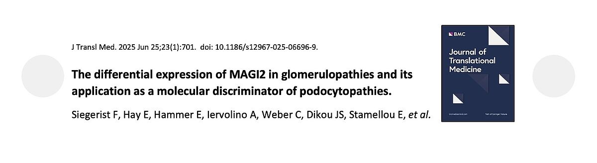 Siegerist F, Hay E, Hammer E, Iervolino A, Weber C, Dikou JS, Stamellou E, Butt L, Benzing T, Wiech T, Brinkötter PT, Zimmerman U, Capasso G, Chatziantoniou C, Chadjichristos CE, Huber TB, Völker U, Schindler M, Endlich N (2025) The differential expression of MAGI2 in glomerulopathies and its application as a molecular discriminator of podocytopathies. J Transl Med. 23:701. ArtikelPubmedRelated |